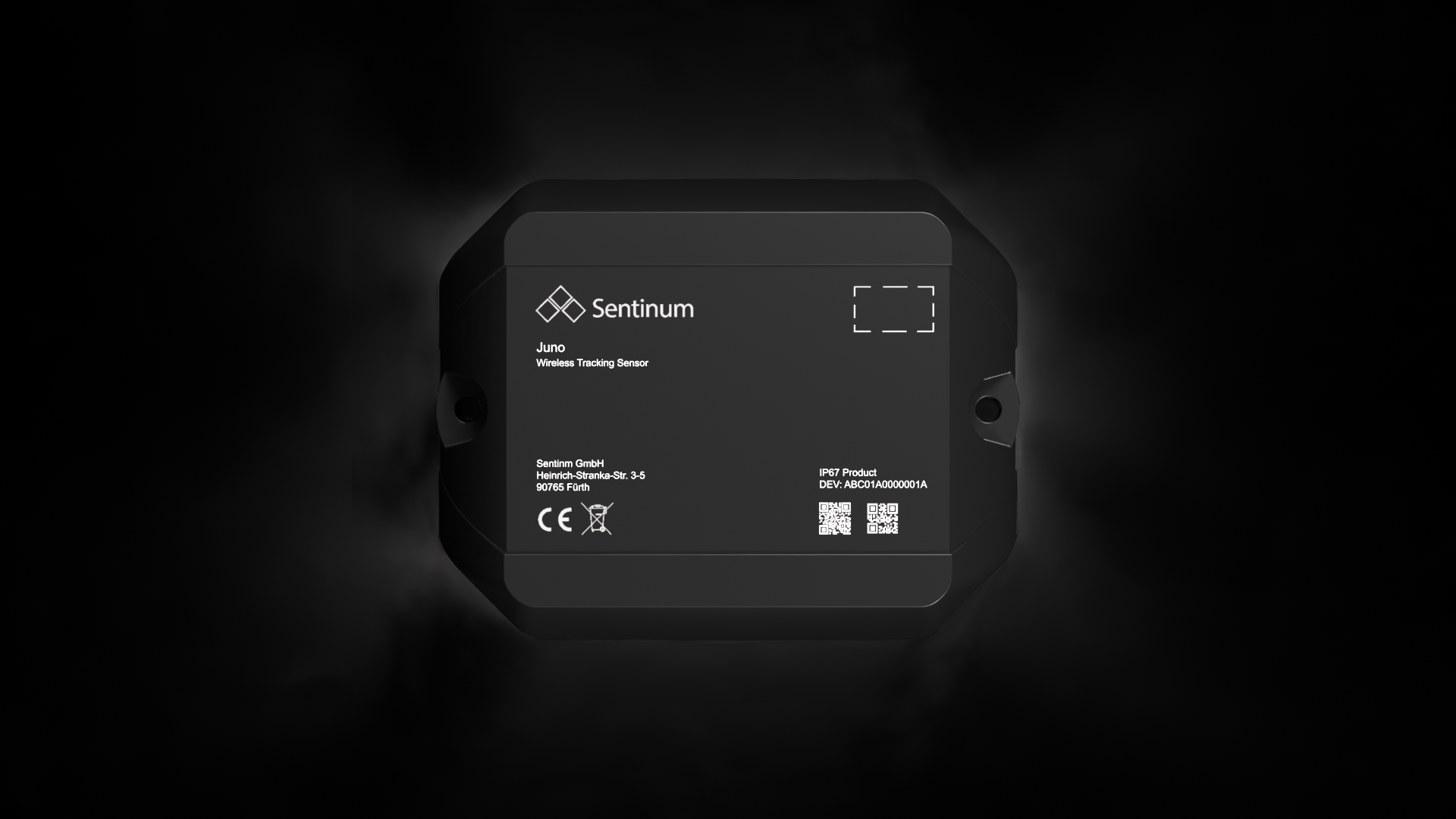 Sentinum Juno ID und Neigungssensor (Tilt), drahtloser mioty® easy Tracker ohne GNSS, Lokalisierung über Netzwerk, IP67, -30°C bis 75°C, konfigurierbar über NFC, Accelerometer für Öffnungs- und Vandalismusdetektion, wechselbare Batterie 2xAA Zellen.Eigenschaften