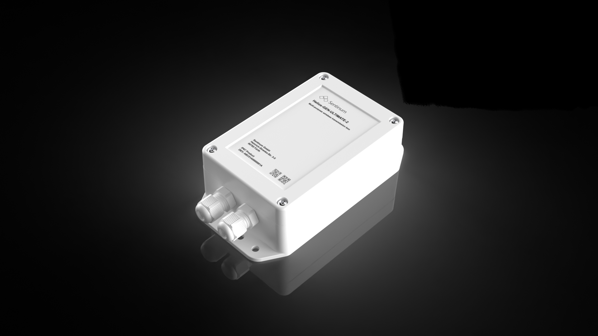 Sentinum Helios mioty®, drahtlose multipurpose Anschlussbox für zwei Sensoren zur Selbstkonfektionierung von unterschiedlichen Sensoren mit unterschiedlichen Schnittstellen ausgestattet, Anschlüsse: 1xPT1000, 2x4-20mA Stromschleife, 2xAnalgog 0-10V, 1x0/10V Schalteingang, 1x0/10V Output Schaltausgang, 1x Pulszähler Eingang, 1xRS485 Eingang, Versorgungsspannung 24V und 3,3V, IP67, Gehäuse ABS/PC, Konfiguration über NFC, wechselbare Batterien (4 AA Zellen). Lieferumfang: Helios Smart Box, Batterien.
